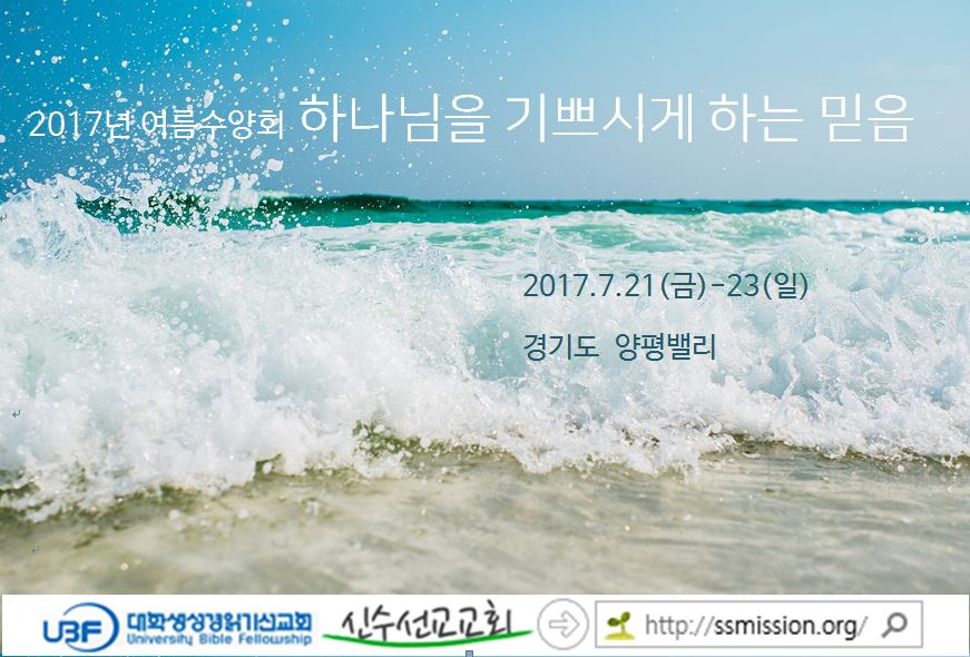 2017년 여름수양회가 다음주에 있습니다. 특히 2세들이 말씀의 은혜를 풍성히 누리도록 기도 부탁 드립니다.